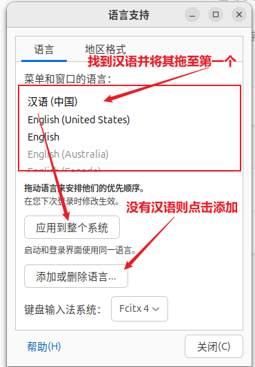 - 安装中文输入法(安装时选择的键盘是汉语键盘则默认安装中文拼音输入法)