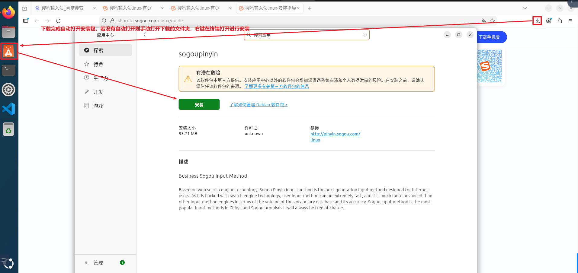 下载搜狗输入法 for Linux版本进行安装:通过Ubuntu的浏览器下载