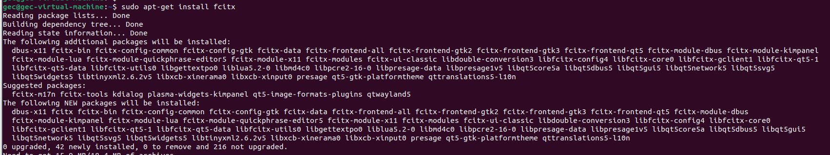 安装fcitx: 打开terminal,输入指令:sudo apt install fcitx