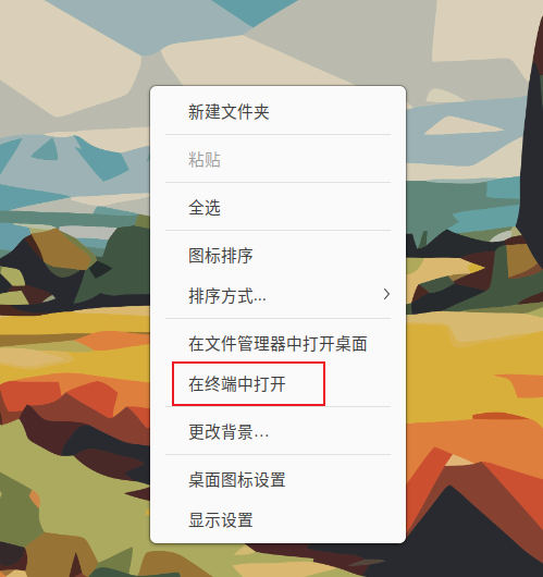 右键桌面-->在终端打开