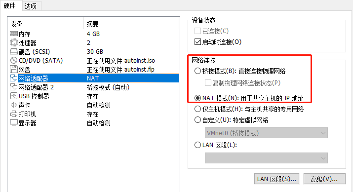 以上两种模式都可以联网,区别就是虚拟机要不要一个独立的IP。对于桥接模式需要注意,必须要仔细选择桥接的物理网卡,否则会出现无法联网的情形。