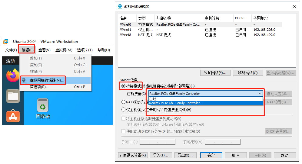UbuntuIP地址固定。虚拟机的网络设置要修改为桥接