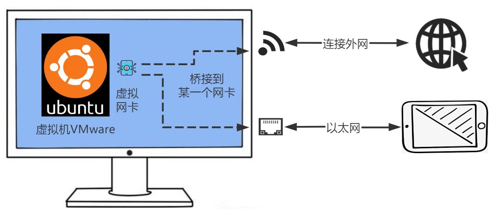 所谓桥接,是指虚拟网卡通过物理机的某一个网络接口,直接连接到路由器去获取
