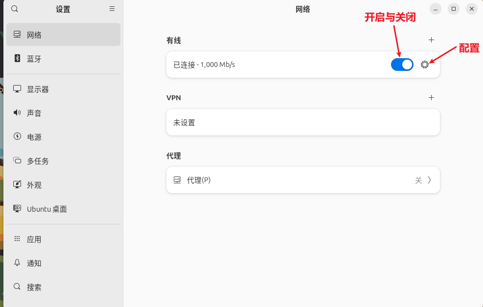 在某些情况下,Ubuntu无法正确找到网关,从而导致无法连网,可以手动配置网关地址: